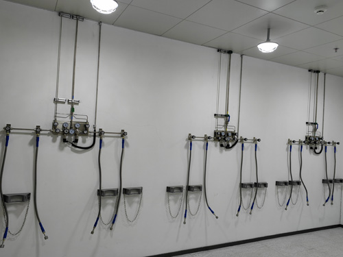 7.氣瓶間內放存的氣瓶適用了帶防倒鏈的氣瓶卡子上放置,氣瓶卡子上堅實壽命長、顏值大方縣。氣瓶卡子上適用了鋁合金軌道鋼做成而成。